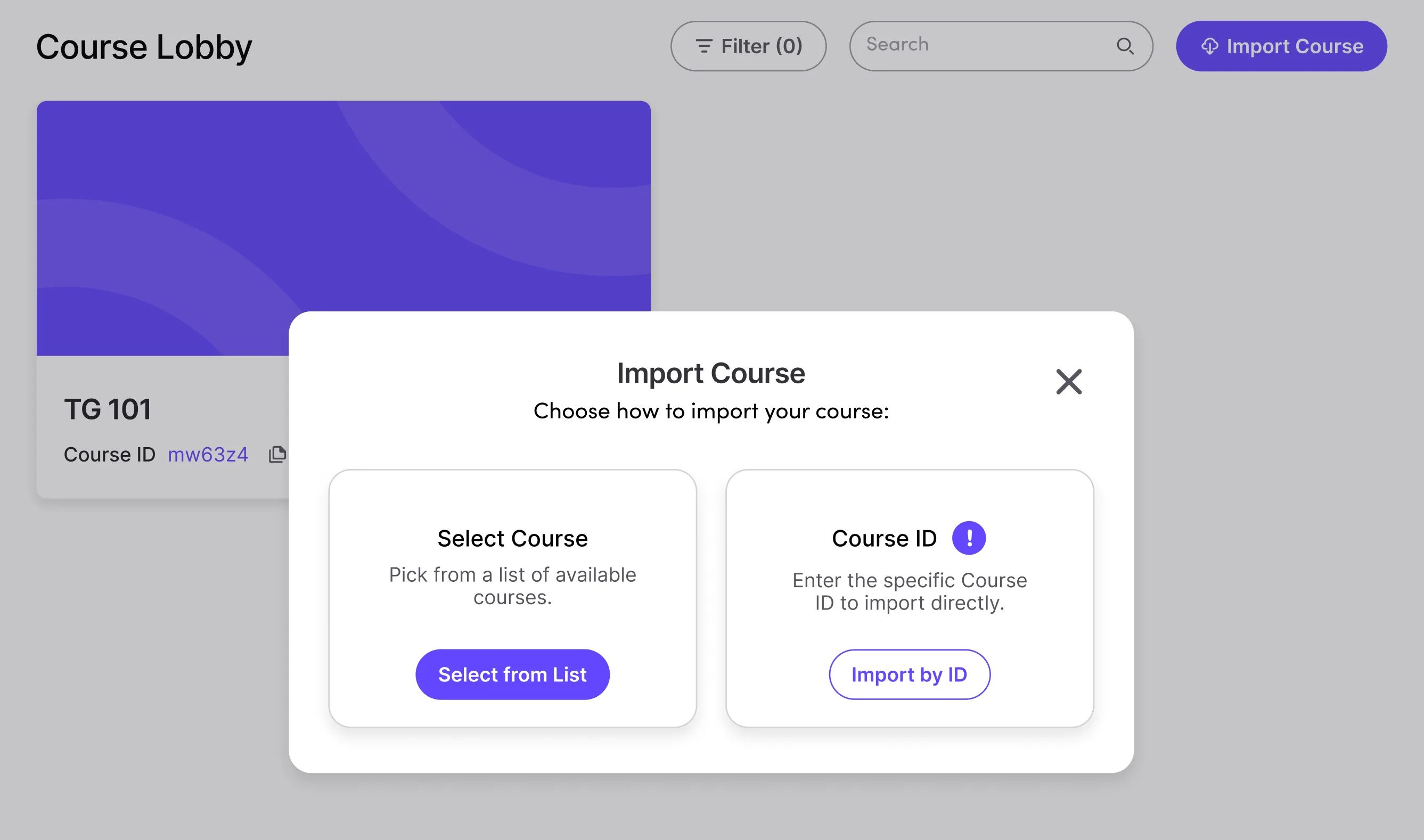 There’s another workflow for setting up your course. Instead of searching through the original dropdown list, you can now import a course by entering its Course ID.