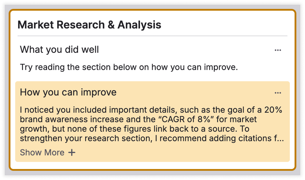 This option includes a paragraph of general feedback on the student's submission, along with up to five targeted suggestions for improvement.