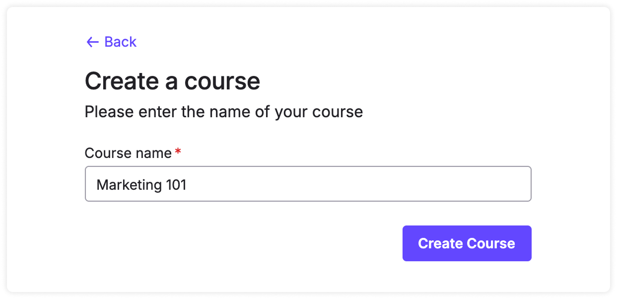 Enter the name of your course and click "Create Course" to finish setting it up.